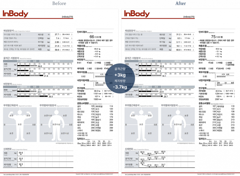 근골은 올라가고 체지방 엄청 내려간 케이스 프로그램 영롱 다이어트 프로그램 프로그램 상세내용 다이어트 탕약 다이어트 치료 골격근량 + 3kg 체지방량 - 3.7kg 감량전후 59.8kg 60.9kg 나이 32 신장 163 성별 여 기간 3개월 한줄 후기 근골격량은 3kg 늘리고, 체지방은 3.7kg이나 줄어든 놀라운 변화였습니다. 3개월 동안 영롱 다이어트 프로그램 덕분에 몸이 더 탄탄해지고 건강해진 걸 느껴요. 체중은 거의 유지하면서도 몸매가 확실히 달라져서 만족스럽습니다. 근육량 증가와 체지방 감소를 동시에 원한다면 강력 추천합니다! 상세 DATA 목록