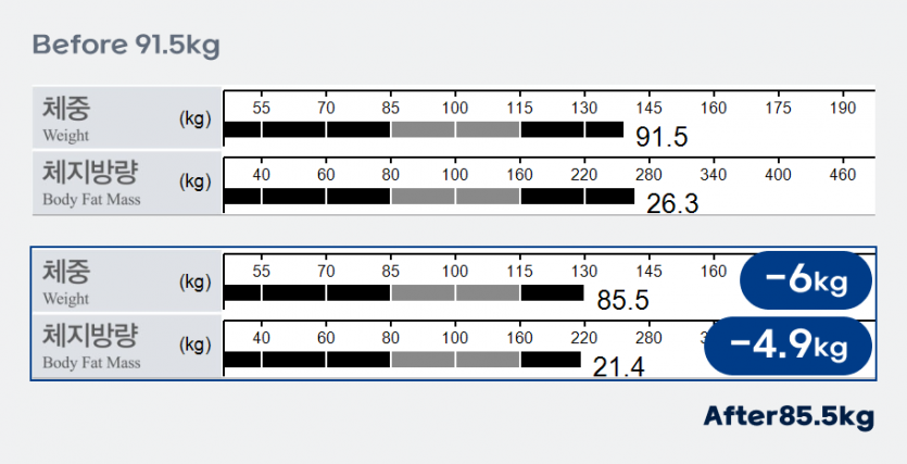 영롱 다이어트 프로그램으로 6kg 감량, 체지방은 4.9kg이나 줄었어요.